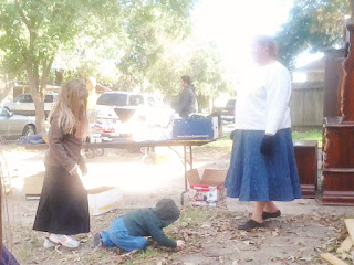 | Kimmie has a hard time giving up some of the "for sale" products. She kept getting toys from the boxes to play with. . .breaking up, even with toys, is hard to do. |